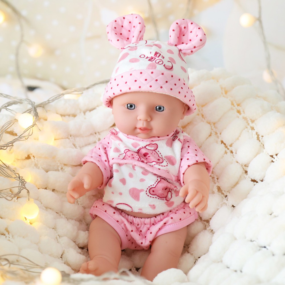 Лялька пупс 30 см (CX-006) — мила лялечка у рожевому костюмчику з вушками